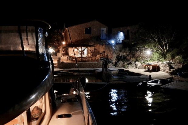 Polecamy postój i posiłek w restauracji, o wyjątkowym klimacie i smacznej kuchni, z przyjaznym i pomocnym właścicielem. Stolik można rezerwować (my robiliśmy to przez Facebook). Restauracja nie ma typowej karty, właściciel oferuje “all-inclusive”, gdzie w cenie 250 kun dla dorosłych i 100 kun dla dzieci otrzymujemy kolację z napojami (w tym wino). Pierwszym daniem mogą być np. Skampi na buzara, drugim ryby dla dorosłych i kurczak dla dzieci. Rozsądna cena za posiłek w taki klimatycznym miejscu. Dzieciom bardzo podoba się plaża, żywe ryby i ośmiornice, które w basenie trzyma rybak, a także świetliki, za którymi biegały późnym wieczorem.